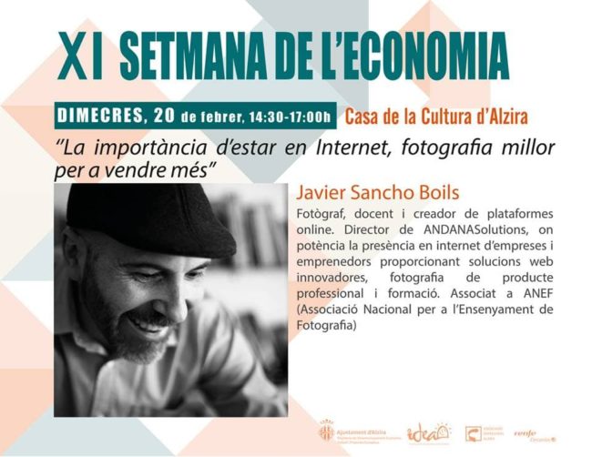 El día 20 de febrero dentro de la XI Semana de la economía local de Alzira de 14:30 a 17:00 impartiré la formación: La importancia de estar en internet, fotografía mejor para vender más.